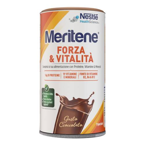 Meritene è un alimento arricchito che contiene i nutrienti ideali per recuperare le energie ed affrontare gli impegni quotidiani con più vigore grazie ad una combinazione specifica di 19 vitamine e minerali e proteine ad alto valore biologico.